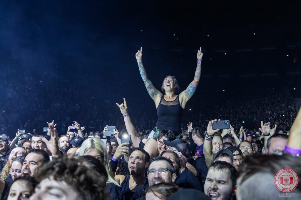 Ronnie was in full showman mode, tossing his mic in the air multiple times, walking through the crowd with Bad Wolves’ Daniel Laskiewicz during Fear, and even asking fans to light up the arena with their phones. When the crowd delivered, Ronnie called for his photographer to capture the moment — but when they didn’t show, he settled for a tech snapping an iPhone pic. Classic Ronnie.