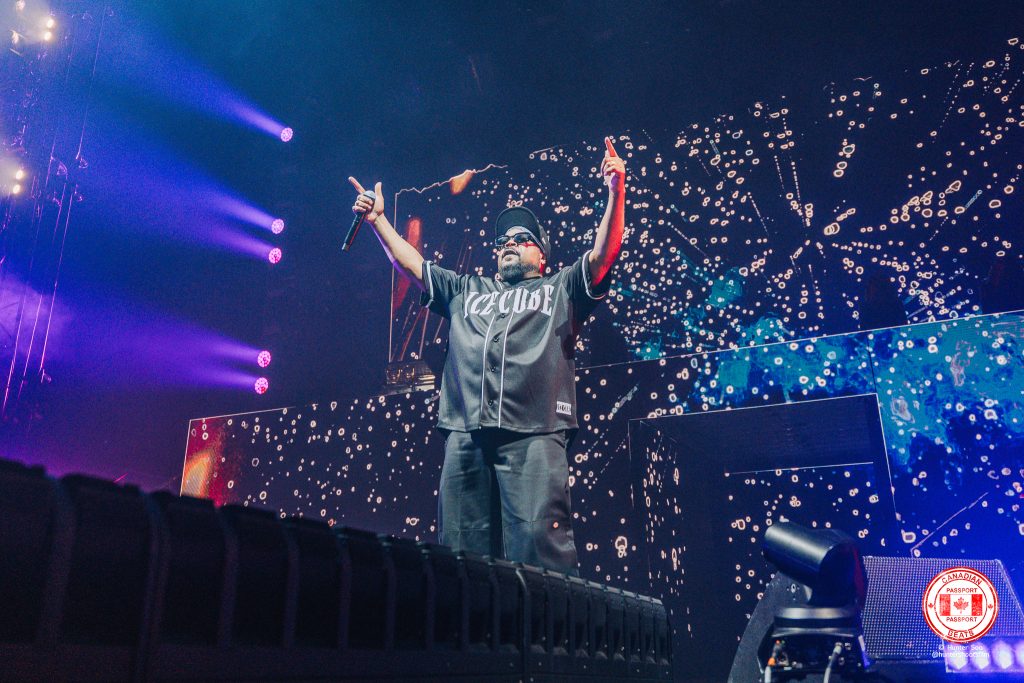 On September 20th, American rapper, songwriter, actor, and film producer Ice Cube brought his Truth to Power: 4 Decades of Attitude Tour for a stop at the Pacific Coliseum in Vancouver. The night served as a wide-ranging look back on Ice Cube’s four decades in rap and entertainment, blending his iconic catalogue with his trademark, hard-hitting social commentary. The lower bowl of the Pacific Coliseum pulsed with energy as devoted fans came together to relive N.W.A anthems, celebrate Ice Cube’s solo catalogue, and 40 years of his impressive career.