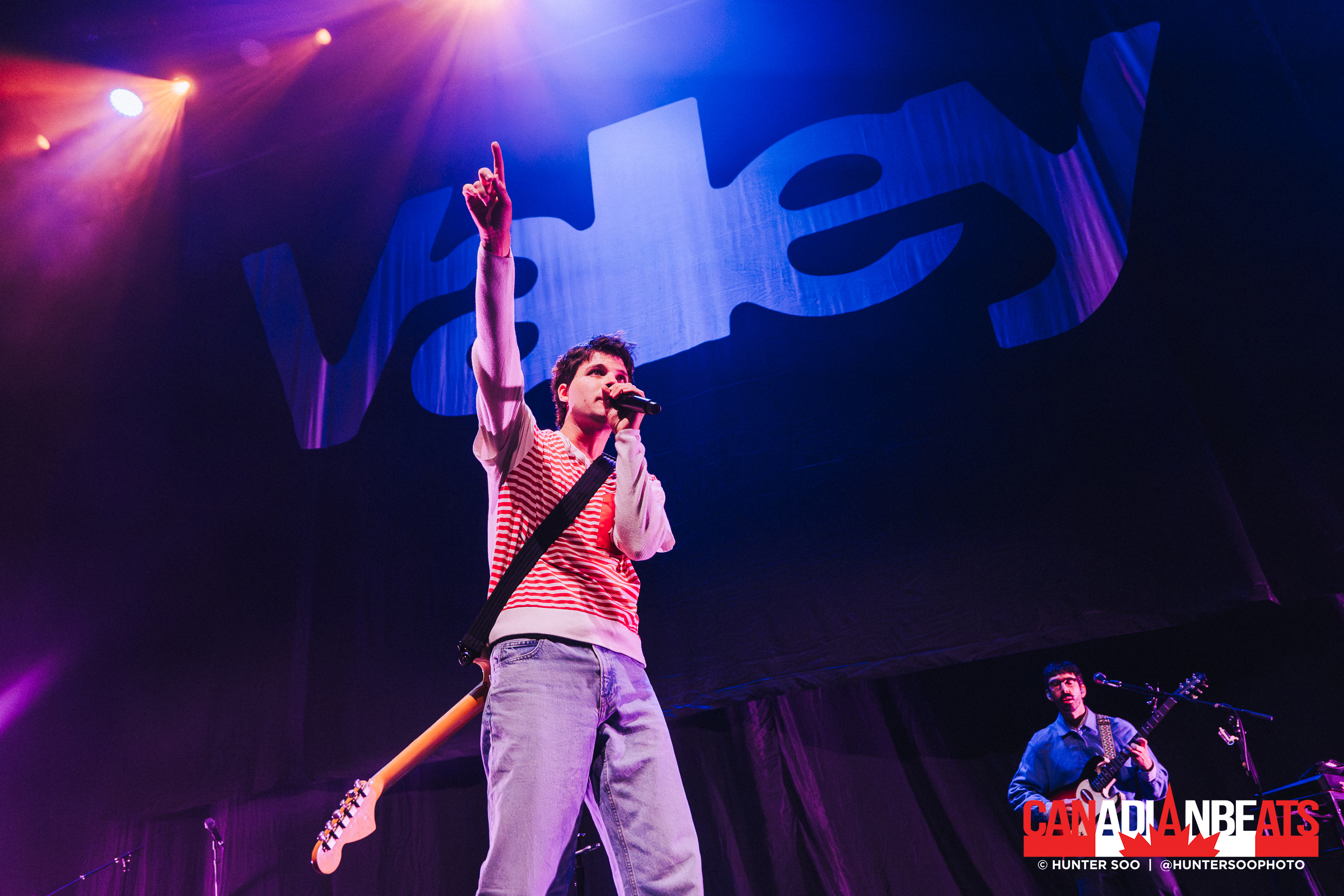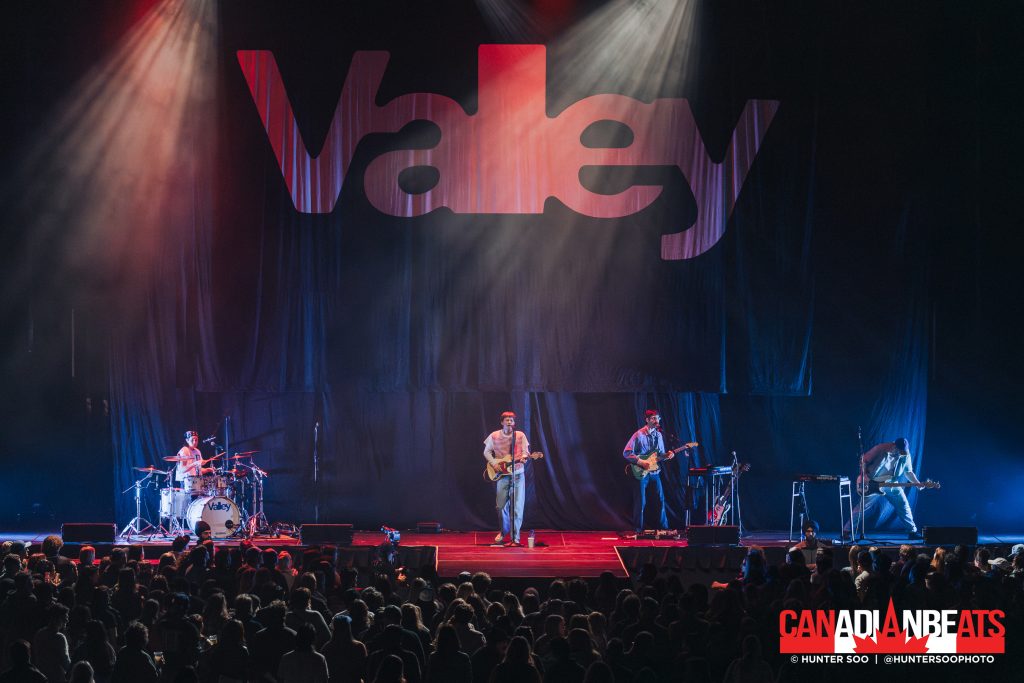 Opening the night was good friends of The Beaches, and fellow Torontonians, Valley. The alternative pop duo brought a genuine connection with the audience and its bedroom pop sound, creating an intimate atmosphere. The band gravitated to their newest release Water the Flowers, Pray for a Garden (2024) with most of their set comprised on songs from that album like “Bass Player’s Brother”, “Water the Flowers, Pray for a Garden”, “Growing Apart”, “Bop Ba” and “When you Know Someone” The band also did a tastefull cover of MGMT’s “Kids” and performed a rendition of their hit “Like 1999.” Their stage setup was shallow and compressed as a black curtain draped over the stage with the words “Valley” right behind the band with little space. Despite the bland stage design, Valley kept the energy throughout the night with touring member Feurd even doing a Marty McFly esque solo, sliding on his knees and jumping in the air.