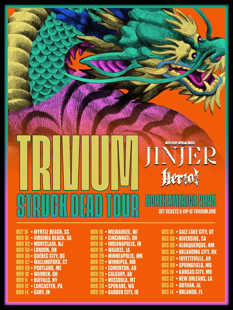 “We couldn’t be more excited to finally bring this monstrous tour to life – Trivium headlining this fall across North America with the unstoppable force of Jinjer and the crushing energy of Heriot,” says frontman Matt Heafy. “Every night is going to be an absolute onslaught of riffs, sweat, and connection with our fans. This lineup represents the present and future of heavy music, and we’re honored to share the stage with such ferocious talent. See you in the pit.”