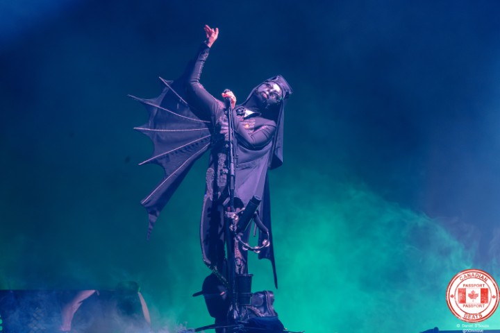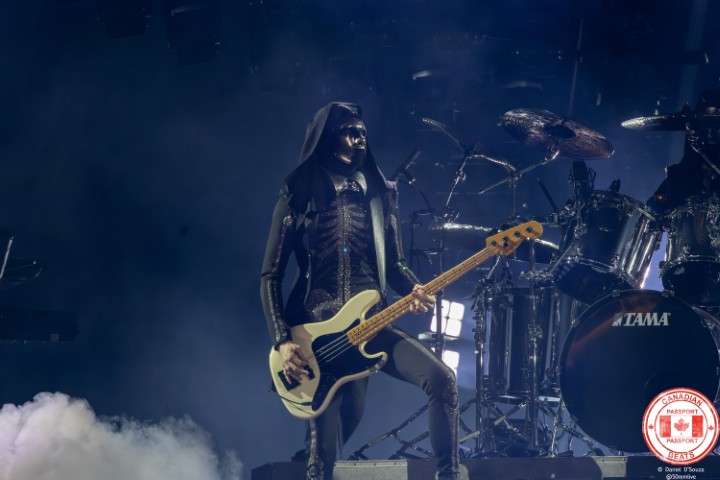 In Toronto, the Scotiabank Arena was transformed into a site of liturgical theater as Ghost brought their Skeletour World Tour to a capacity crowd. Led by the latest incarnation of the clergy, Papa V Perpetua, the band delivered a 90-minute “ritual” that felt less like a standard arena concert and more like a carefully choreographed piece of occult performance art.