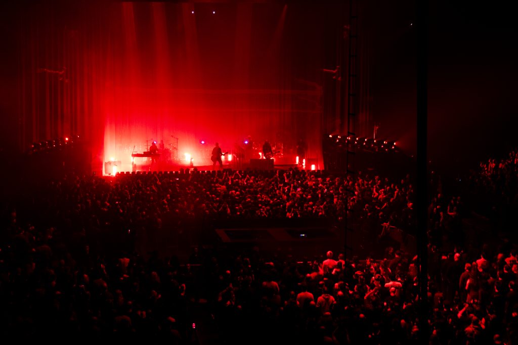 Unlike other tours, there was no dramatic blackout-to-main-stage reveal. Instead, as the final notes of the opener faded, Trent Reznor appeared alone on a square middle stage embedded in the crowd. No bombast. No warning. Just presence.