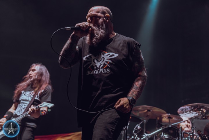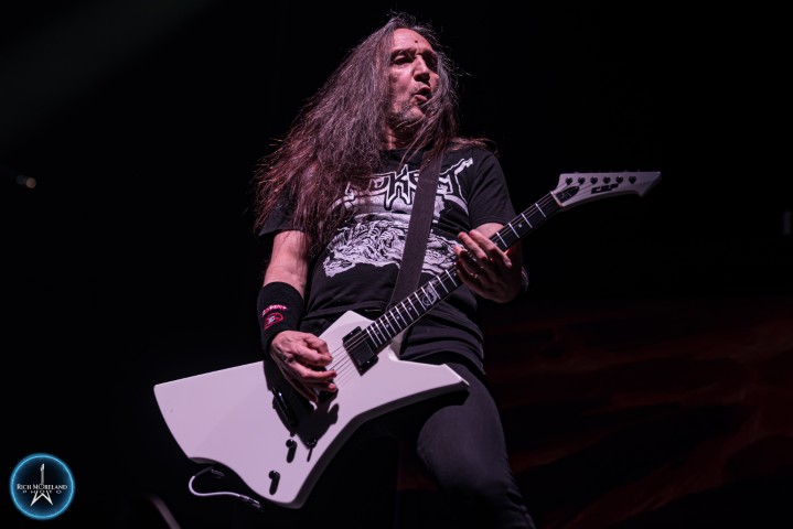 Exodus kicked off the night at precisely 7 PM with an absolutely unrelenting six songs set featuring one of the new singles from their upcoming album “Goliath”. Hard hitting and unrelenting, a trademark of the Exodus sound, the band wasted no time in bringing the brutality and holding that energy solid through their entire set. Short but sweet, highlights of the set featured the songs Blacklist, Bonded by Blood, and Strike of the Beast. At one point singer Rob Dukes brought out a drink for guitarist Gary Holt, and took over his picking duties while Holt enjoyed his drink.